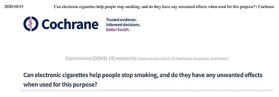 Cochrane outlines that the effect of using nicotine e-cigarettes to quit smoking is better than using nicotine replacement therapy and e-cigarettes that exclude nicotine.