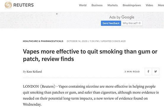 Reuters reported the results of Cochrane’s comprehensive research: “The review found: listed in gum or patch, e-cigarette is more effective in quitting smoking.”
