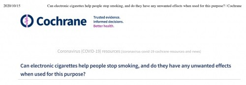 Cochrane pointed out that using nicotine e-cigarettes to quit smoking is better than using nicotine replacement therapy and nicotine-free e-cigarettes.